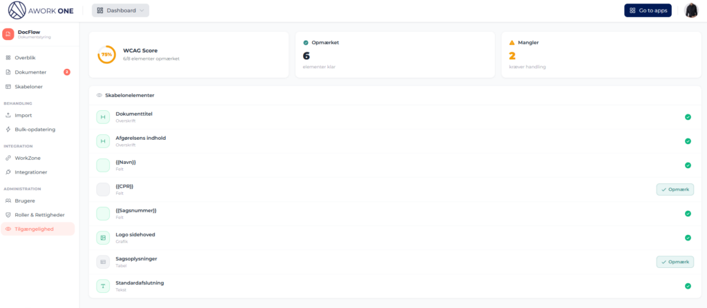 DocFlow sammensætter indholdet for dig og sikrer, at alle nødvendige oplysninger bliver inkluderet korrekt, hver gang. Det reducerer manuelt arbejde og minimerer fejl i dokumentprocessen.