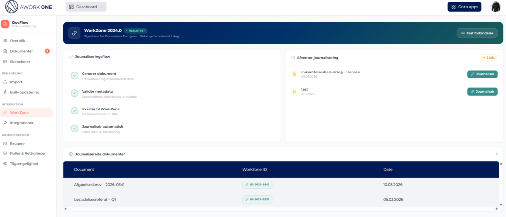 Løsningen kan integreres med organisationens datakilder, brugeradministration og dokumenthåndteringssystemer, så dokumentgenerering bliver en naturlig del af de daglige processer.